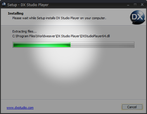 • Step 5: The 3D viewer (DX Studio Player) will now install.