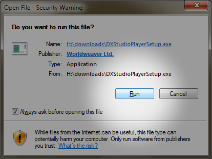 • Step 1: Select "Run" from the security warning dialog.